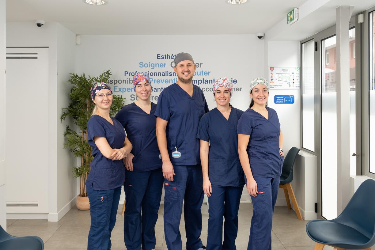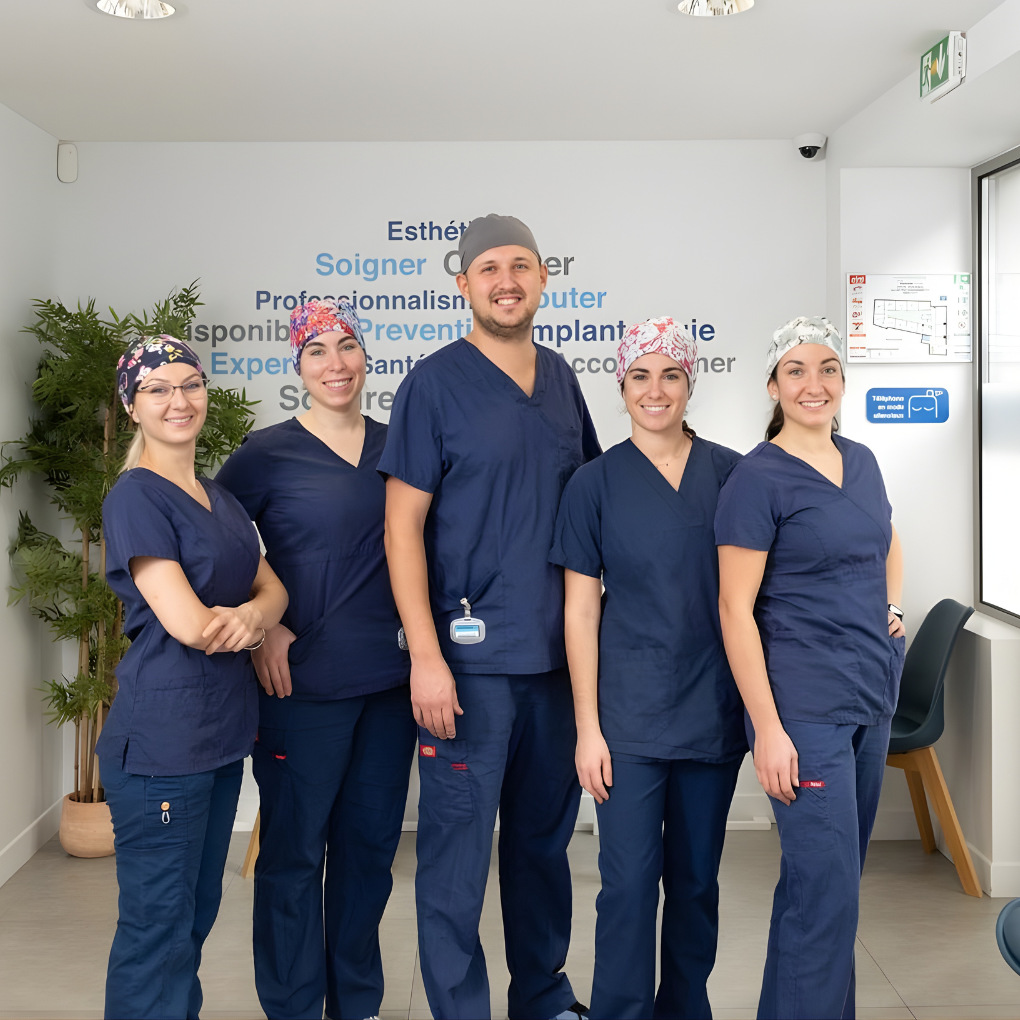 - Une équipe de chirurgiens-dentistes et d’assistantes dentaires